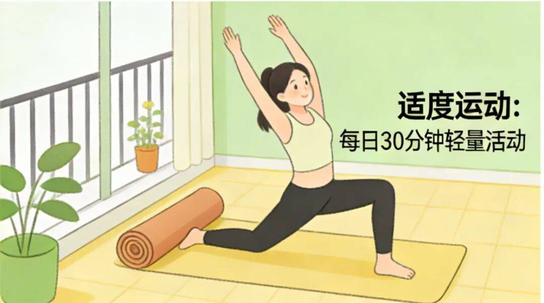 第三个习惯,适度运动,激活身体活力。假期里大多久坐不动、缺乏锻炼,身体代谢变慢,免疫力也会随之下降。回到工作岗位后,不必追求高强度运动,每天抽出20-30分钟,做一些温和的运动即可,比如晨起拉伸、办公室课间操、下班散步,或者简单的慢跑、跳绳。适度的运动能促进血液循环,激活免疫细胞的活性,帮助身体快速恢复状态,增强抵抗力。