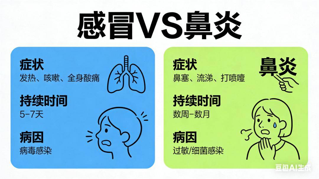 想要摆脱春季过敏性鼻炎的困扰,首先要学会区分它与普通感冒,避免误判误治。普通感冒多由病毒感染引起,除了流涕、打喷嚏,通常还会伴随发烧、咽痛、咳嗽、乏力等全身症状,病程一般7-10天可自愈;而过敏性鼻炎是免疫系统对过敏原的异常反应,核心症状是阵发性喷嚏、清水样鼻涕、鼻塞、鼻痒,部分人还会伴随眼痒、流泪,无发烧等全身症状,症状会持续数周,接触过敏原后会突然加重。